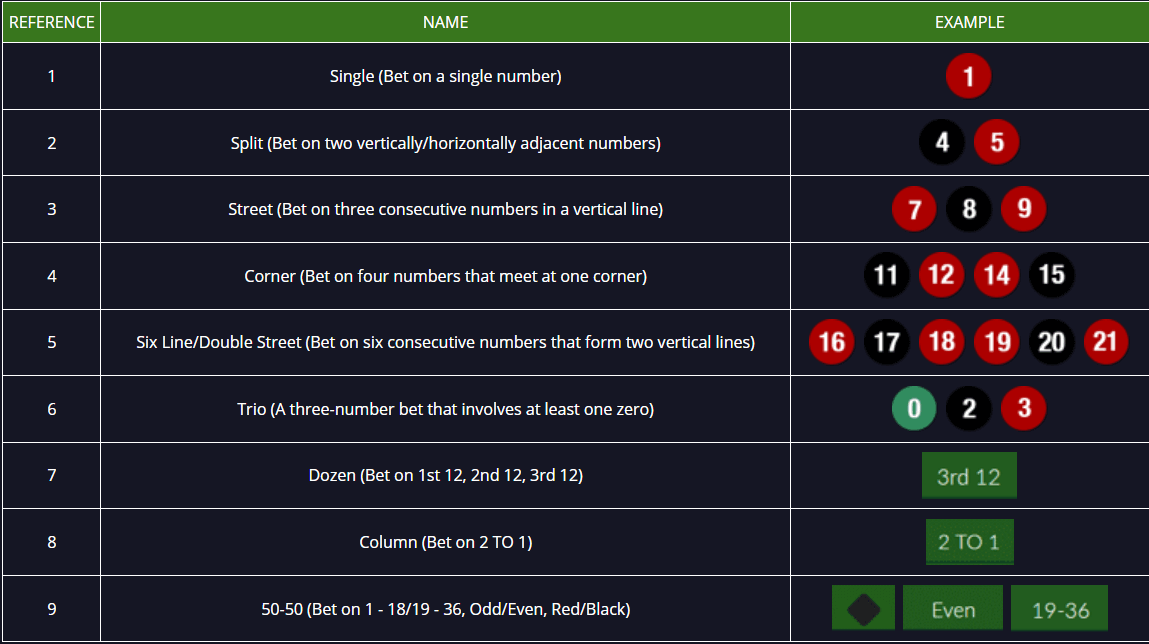 1. Permainan Roulette adalah sebuah permainan casino menggunakan roda berisikan angka-angka serta menggunakan sebuah bola kecil. Tempat terakhir bola kecil ini berhenti akan menjadi hasil permainan pada ronde tersebut. Disini member harus bisa menebak dengan benar dimana bola kecil akan berhenti untuk meraih kemenangan.